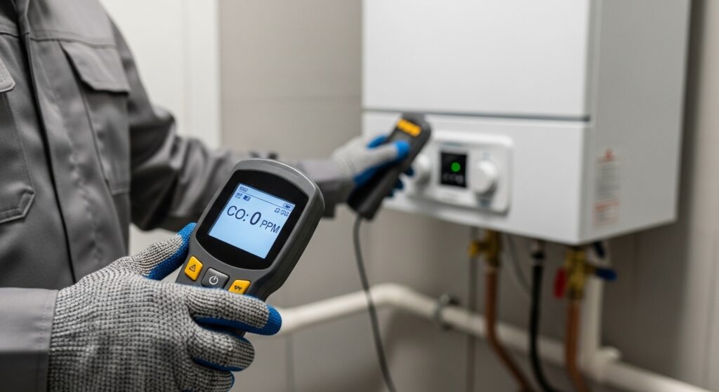 Técnicos treinados checam válvulas, conexões e trilhas de gás com equipamento de detecção profissional, assegurando que, após a manutenção, o aquecedor opere sem riscos e com eficiência energética.